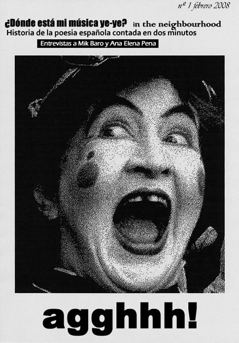 Después de la versión en PDF, Así se fundó Carnaby Street también saldrá en formato fanzine fotocopiado en blanco y negro, bajo el título de Agghhh!. Claro está, el concepto general cambia respecto al PDF, por lo que se incluirán algunas novedades, escritos inéditos y quién sabe si el sorteo de un apartamento en Torrevieja. Se editarán dos números con una tirada de 100 ejemplares cada uno. Pero no esperen una lujosa revista en papel de luxe ni ilustraciones a todo color, a cuatro tintas. Amamos el negro manchado de las fotocopisterías, lo cual demuestra que cualquier cosa puede ser escrita en un fajo de folios agrupados con una grapa. Coleccionistas, energúmenos del papel fotocopiado y los lápices Alpino, en febrero estará en todos los kioskos el primer número de Agghhh!. Y aquí, para ir amoldando el ojo con publicidades de adelanto, tres hojas aún inconclusas. Por cierto, que el citado fanzine será tan gratuito como descargarse del emule toda la discografía de Sylvie Vartan o Lucio Battisti, ahora que ya pagamos canon y la mala conciencia [personal y colectiva] va a ir a parar a las arcas de SGAE. Cultura libre en un mundo libre!!!